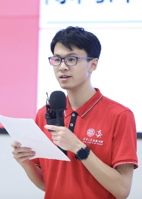 来自高年级英才班的郑明宇同学以学长的身份给2021级新同学提出两点建议,一是要永远保持对真理、对知识的渴望,二是要把握好自己的学习节奏。他鼓励学弟学妹们刻苦学习、持之以恒,追求数学的至真至美,担负起兴东西文明、载史册荣光的重任。
