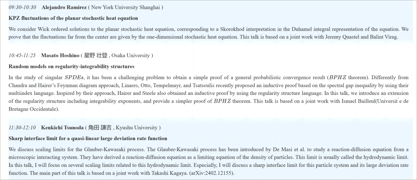 组织者:Tadahisa Funaki ( BIMSA ) Chenlin Gu ( 顾陈琳, YMSC ) Guohuan Zhao ( 赵国焕, AMSS )